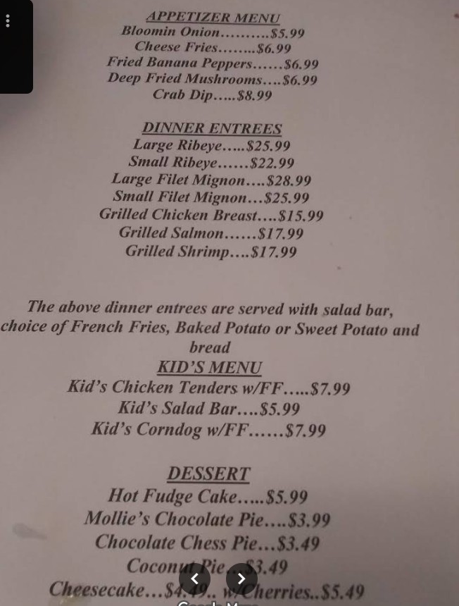 Sharon, my waitress, was super friendly and had great Southern hospitality. My food was well-cooked, and the steak was the best value I’ve had in a long time. All the steaks are hand-cut. They have a huge salad bar. They have a market inside with a wide selection of candies, unique gifts, and Christmas decor.